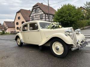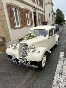 Pour le jour le plus important de votre vie, faites le choix de l’exceptionnel. La Citroën Traction Avant de 1953, icône du design rétro et de l’élégance, transformera votre arrivée en un véritable moment d’histoire. Véritable symbole de sophistication et de charme, cette voiture de collection vous permettra de marquer des esprits et d’ajouter une dimension unique à votre mariage.